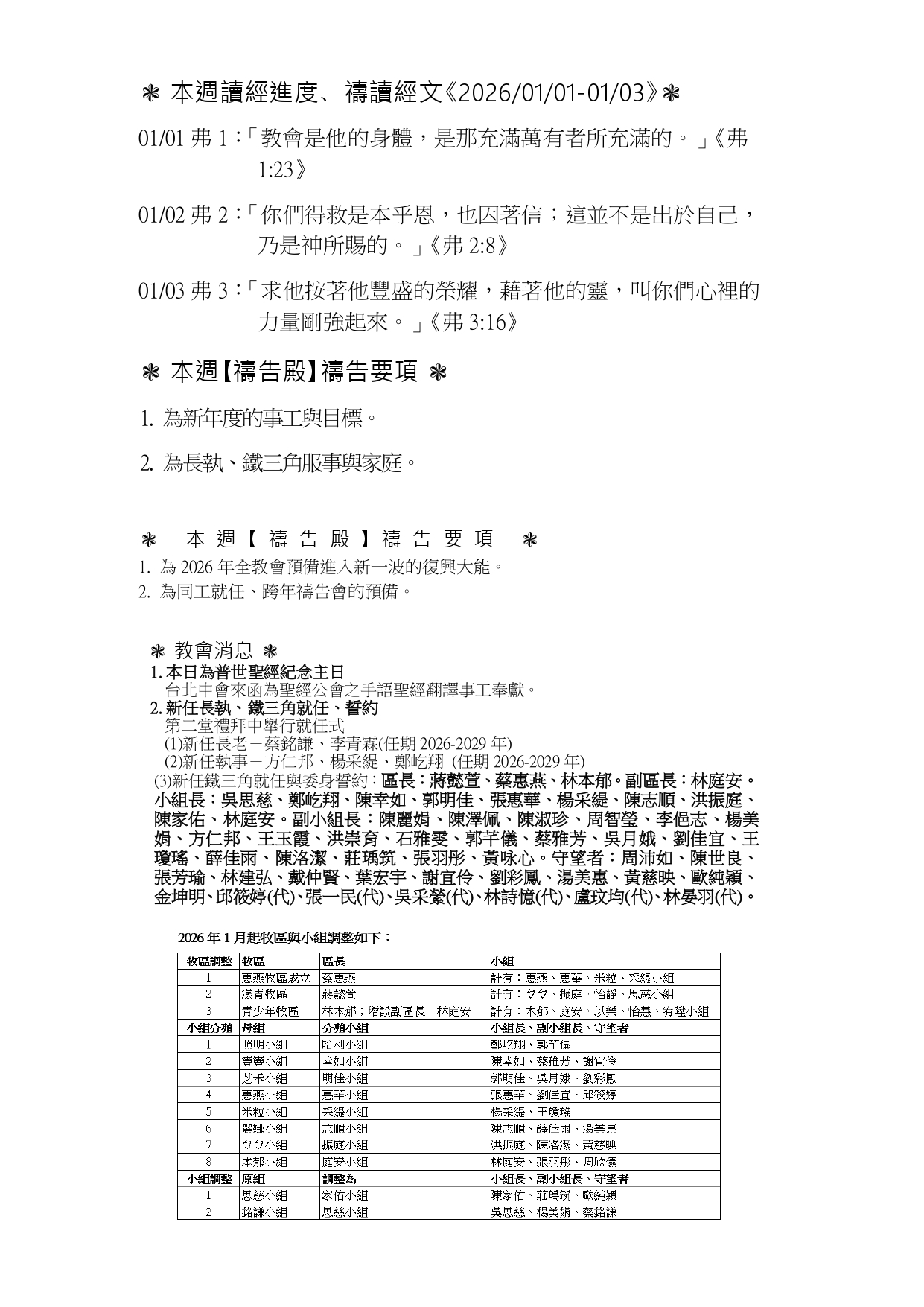 一月小組講章