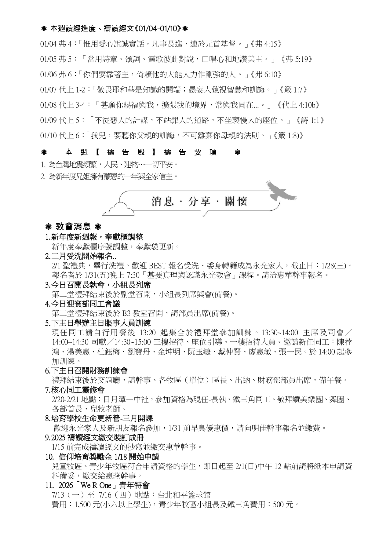2026/1/4 消息關懷