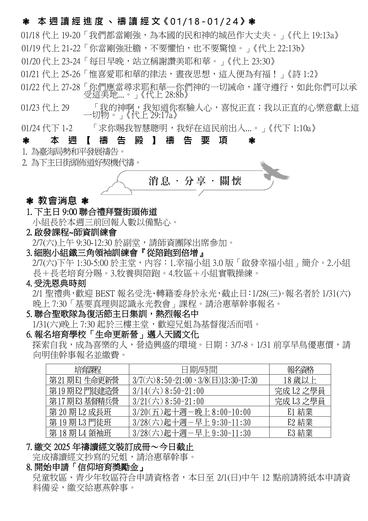一月小組講章